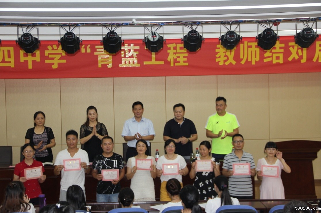 8月30日下午4点,学校 “青蓝工程”教师结对启动仪式在大会议室正式拉开帷幕。校长张长良、副校长徐梅和杜朱洪等行政人员出席了会议,会议由副校长徐梅主持。会议共分三个议程,第一项议程由保障部人事主任龚青宣读《大四中“青蓝工程”教师结对实施方案》;第二项议程为师徒双方签订《“青蓝工程”教师结对协议书》,并给指导教师颁发了“青蓝工程”指导教师聘书。第三项议程对表现优秀的指导教师颁发荣誉证书;最后是全体师徒合影留恋。