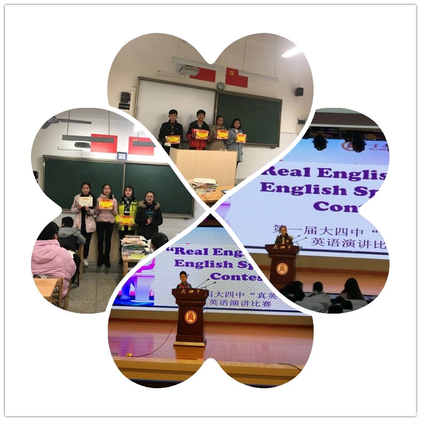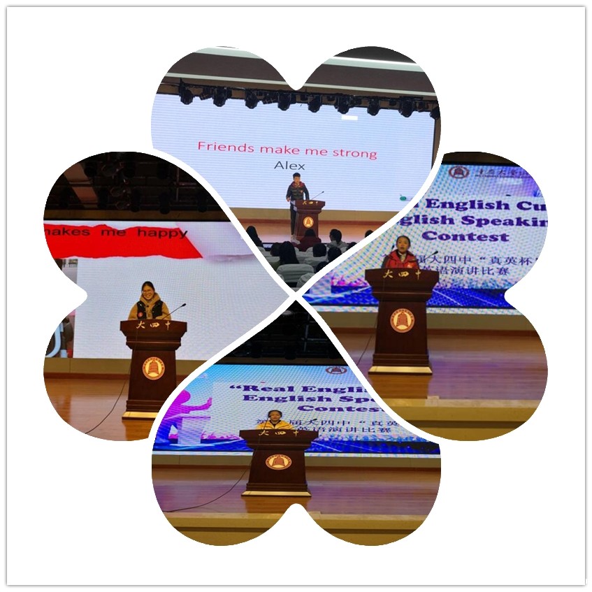 为激发我校学生学习英语的兴趣和热情,创造校园英语氛围, 2017年12月29至30日,我校英语组在学校多功能报告厅组织开展了大四中“真英杯”英语演讲大赛。本次演讲比赛的主题是“______Makes Me ______”。