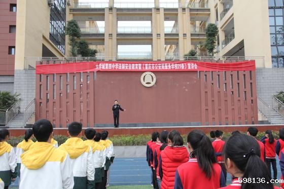 2018年3月5日上午,曾家镇派出所法制安全辅导员施明涛警官来到大四中为全校师生带来一场精彩生动的法制安全教育暨《重庆市公安局服务学校29条》宣讲会,900余名师生到场聆听,现场气氛热烈。