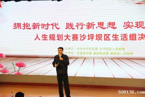 2018年6月8日下午,为深入学习宣传贯彻党的十九大精神、2018年全国“两会”精神和市委五届三次、四次全会精神,深学笃用习近平新时代中国特色社会主义思想,沙坪坝区“拥抱新时代 践行新思想 实现新作为”人生规划大赛沙坪坝区生活规划组决赛在大四中隆重举行。来自市委宣传部宣教处副处长卞明高、西南政法大学学生处副处长胡晓,以及区委宣传部、区文明办、区教委等单位相关领导及选手亲友团,共计300余人参加。