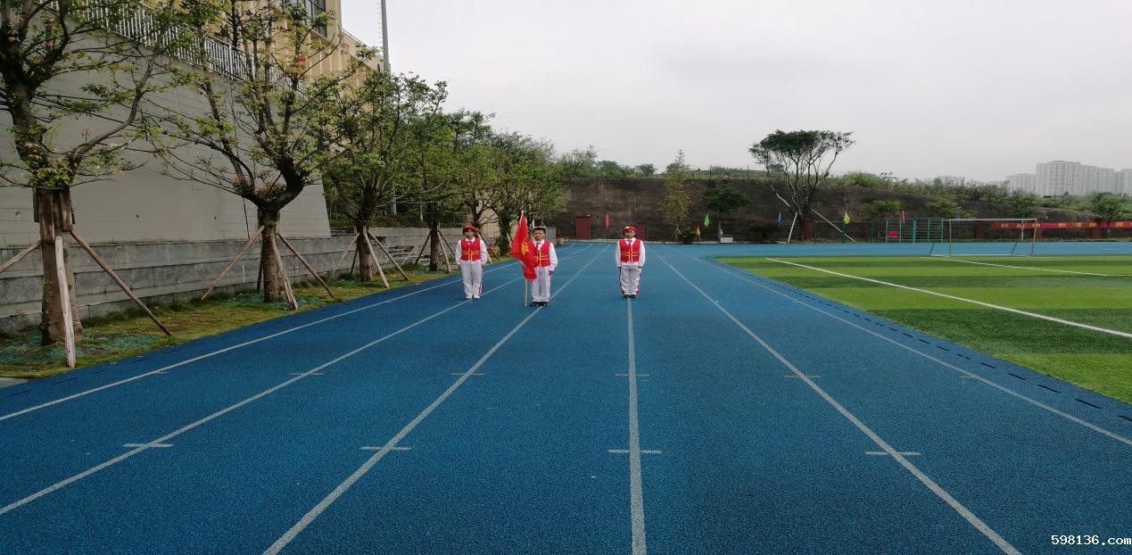 活动中,我们进行了升国旗仪式,少先队员们向国旗敬礼,接着在雄壮有力的出队旗曲中,活动正式开始。