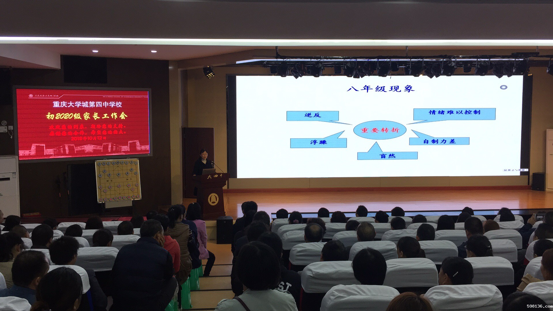 2018年10月12日,我校初2020级在多功能厅进行了主题为“习惯撑起一片天”的家长会。