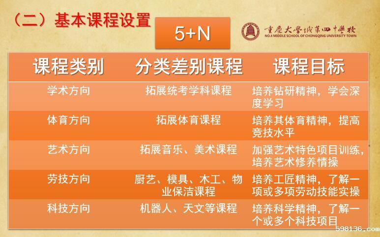 “初二转学生——培养为体艺特长生——保送凤鸣山中学——考入西安交通大学”这样的发展轨迹故事。这个鲜活的案例是我校本真教育理念,本真课程体系、落地、生根、开花结果的一个缩影。大四中遵循教育规律,尊重学生个性,根据学生发展的可能性,实施5+N的分类差别化课程,让教育回归真本原,让每个学生成为最好的自己。