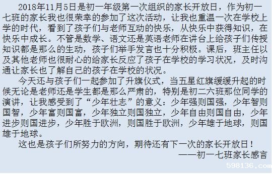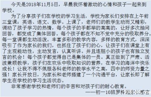 本次“家长开放日”活动,不仅让家长们看到自己孩子在学校的学习状态和表现,也让家长对学校管理、校园文化、师资力量有了一个全面、深入的了解。家长的热情参与和肯定,让初2021级全体教师进一步坚定“务本求真”的办学理念,并决心以更饱满的热情投入到今后的教育教学工作当中。