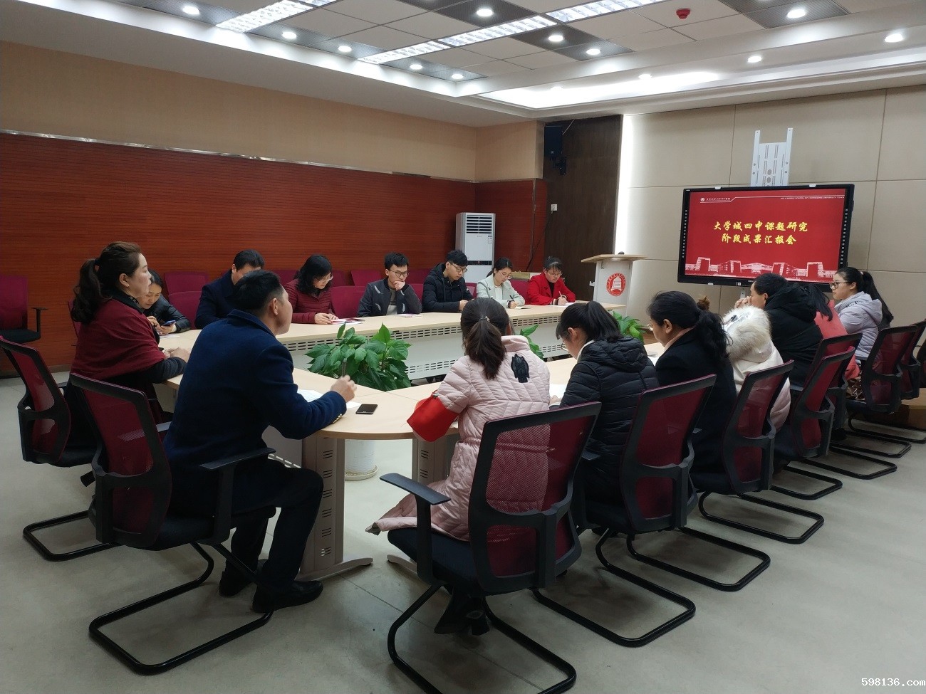 2019年3月4日下午,大学城四中在本真楼204举行了2019年度第一次课题研究阶段性成果汇报。参会的有副校长徐梅、付娟、邓先义等课题组负责人,刘原琴、王平等新进教师列席旁听,特邀吴强、李平芬老师到会指导课题研究工作。活动由杨毅主任主持。