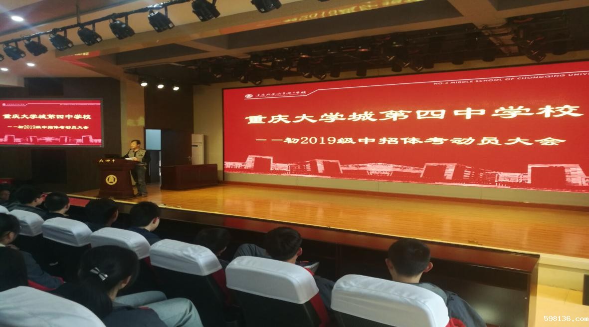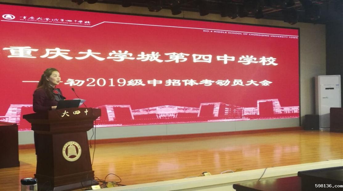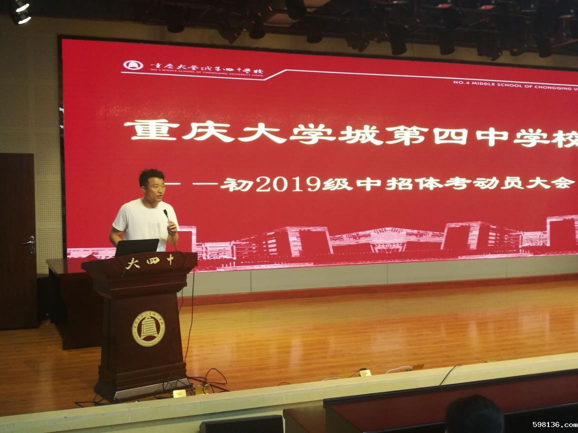 为鼓舞初三年级全体同学以昂扬的斗志迎接中招体考,摘取体训成果,2019年3月29日在我校多功能厅隆重举行大学城第四中学校2019级中招体考动员大会。副校长徐梅、教练翟周洪以及2019级全体师生参加了此次大会。大会由年级组长李荣茂老师主持。