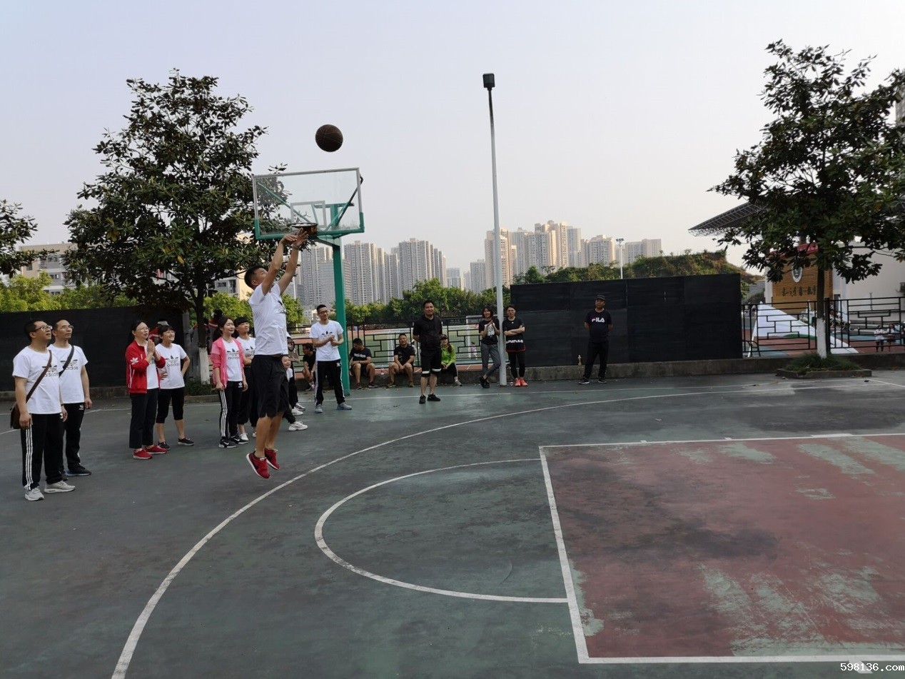 投篮比赛难度系数较大,男教师要站在三分线外,女教师巾帼不让须眉也要两分线外投篮。现场气氛紧张,运动员通过深呼吸,反复拍球找感觉,身体微曲后,向上跃起,手指拨动篮球,空中划出一道美丽的弧线,球进了!