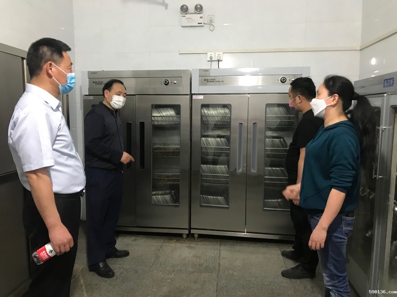 最后,一行人一起检查了学校的食堂,物业相关负责人具体记录和落实。逐一检查了仓库的材料是否过期,提出存放建议避免过期大米等积压,检查了防鼠措施等。特别强调师生餐具的消毒必须充分。