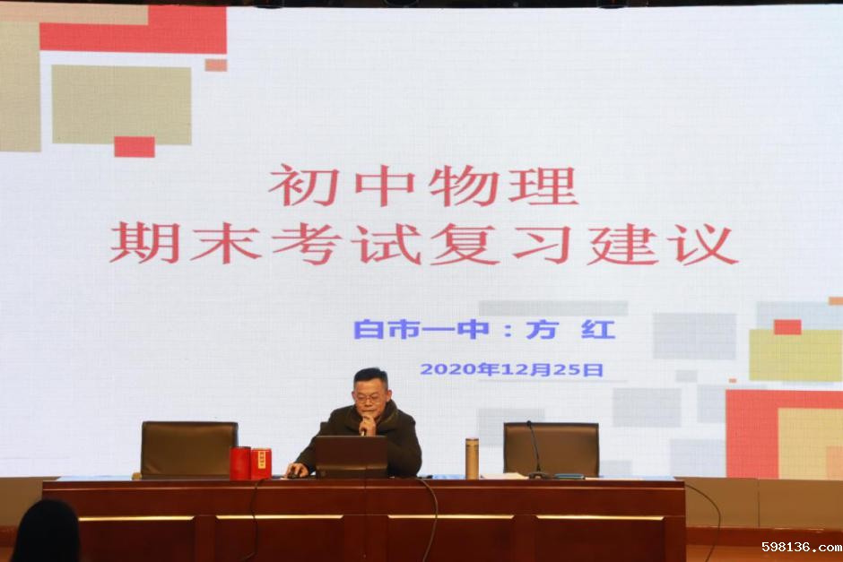 研讨之后,由高新区白市驿一中物理教研组长方红老师作《初中物理期末考试复习建议》专题分享,从期末考试题型、主要考点、难度、难题等方面进行分析,并提出期末考试复习建议。