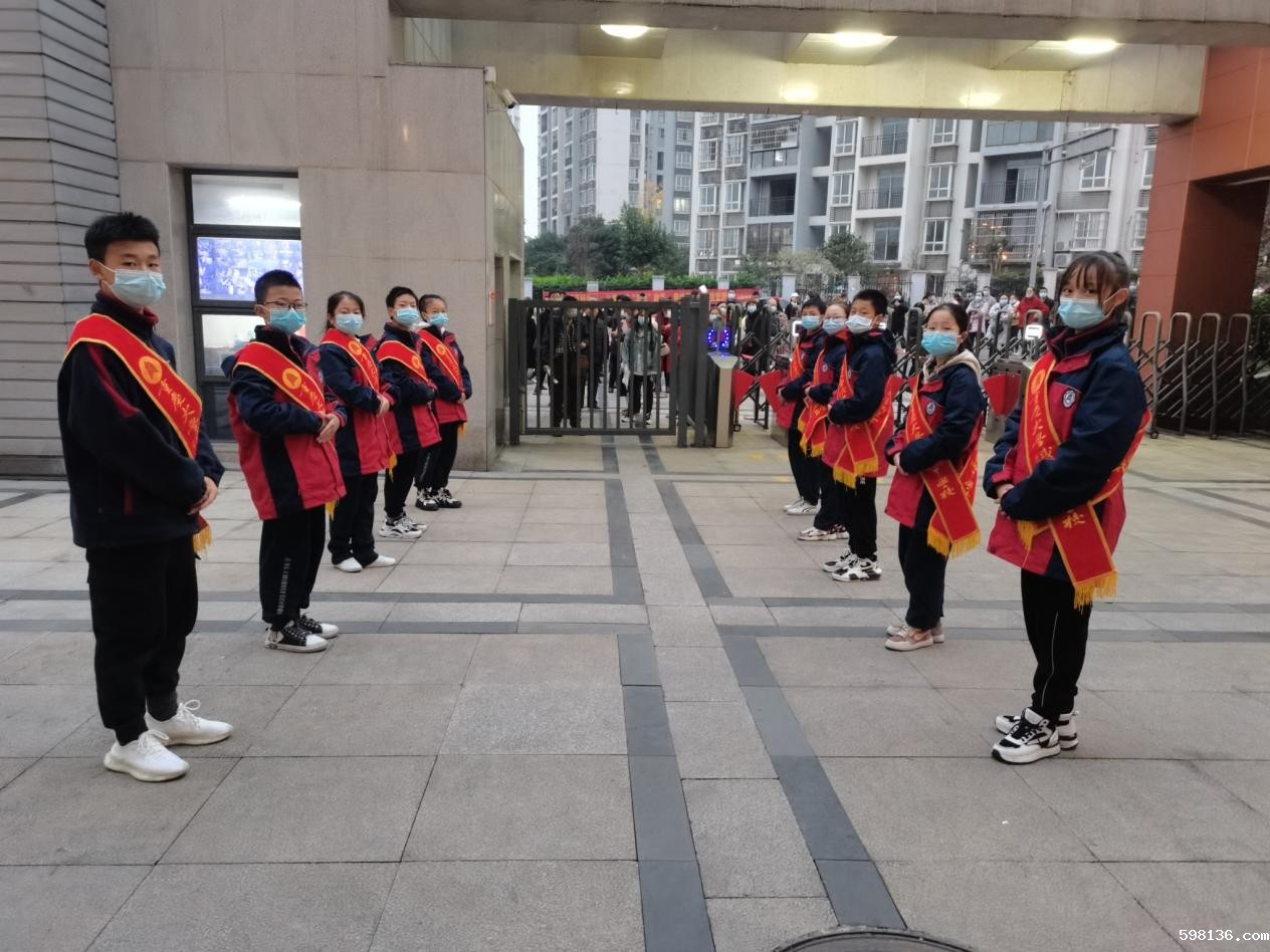 在礼仪队的迎接下,三百多名家长严格遵守疫情防控,戴口罩,持双码测体温,安全有序进入校园,落座初一年级的学生教室。