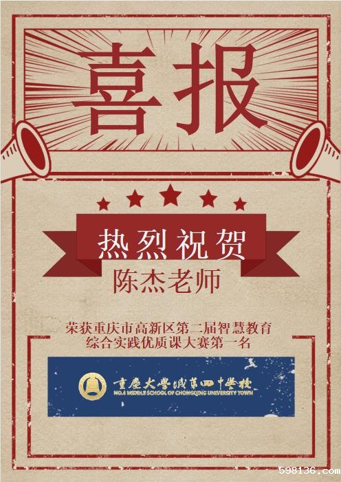 爱岗敬业,乐于奉献, 曾获高新区赛课一等奖,重庆市教学技能大赛特等奖、一等奖等;曾带队参加重庆市物理竞赛,多次获得市区级奖;曾任魔方教练,多次带队获得沙坪坝智力运动会一等奖等。路漫漫其修远兮,吾将上下而求索。