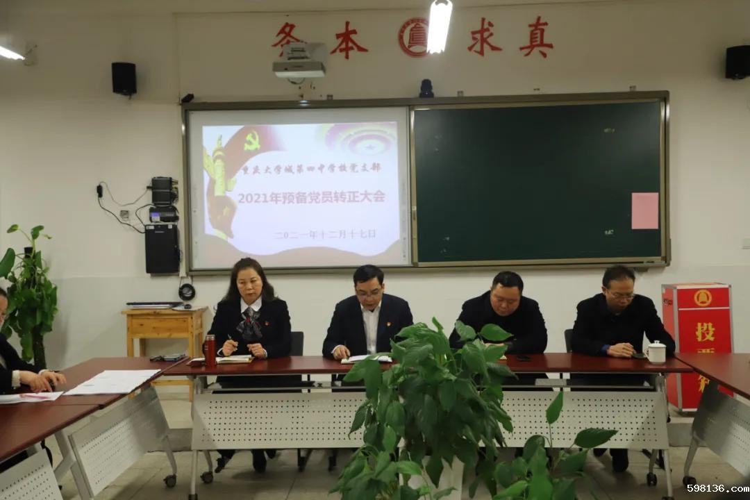 12月17日,中共重庆大学城第四中学校支部委员会召开预备党员转正大会,大会集中讨论预备党员孙祖华、全静文、唐玉琦3名同志的按期转正事宜。