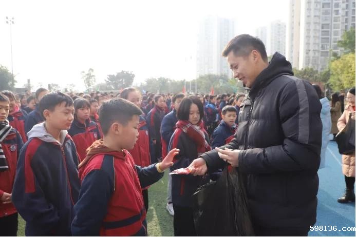 学生是学校的主人翁,学生是学校的关注焦点。值此元旦佳节,我校为每一位学生准备了新年礼物,并由老师们亲手送发到学生手里。礼轻情意重,可爱的学生们都口口称赞:爱了!爱了!