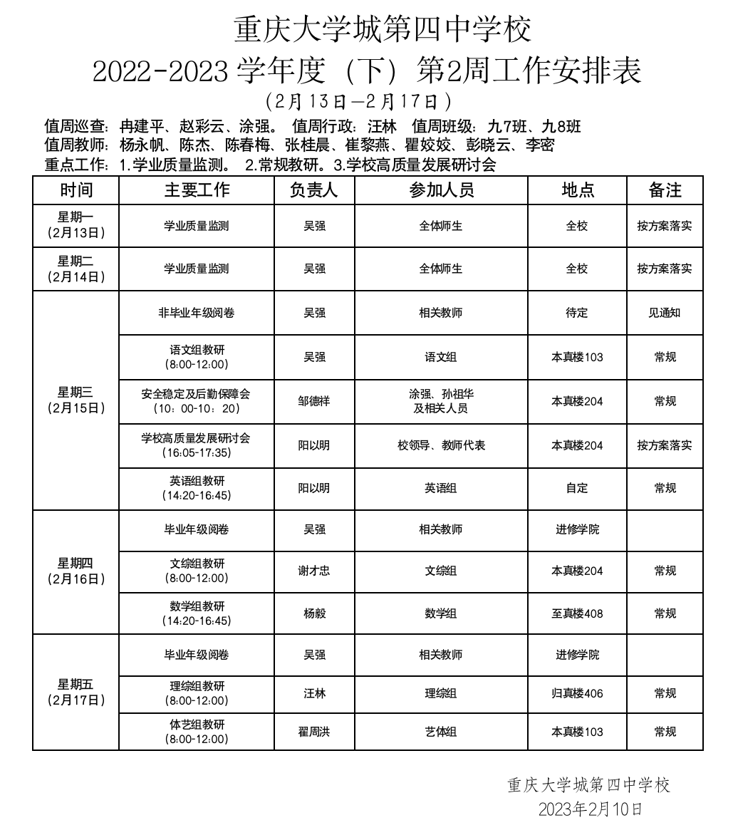 第2周工作安排