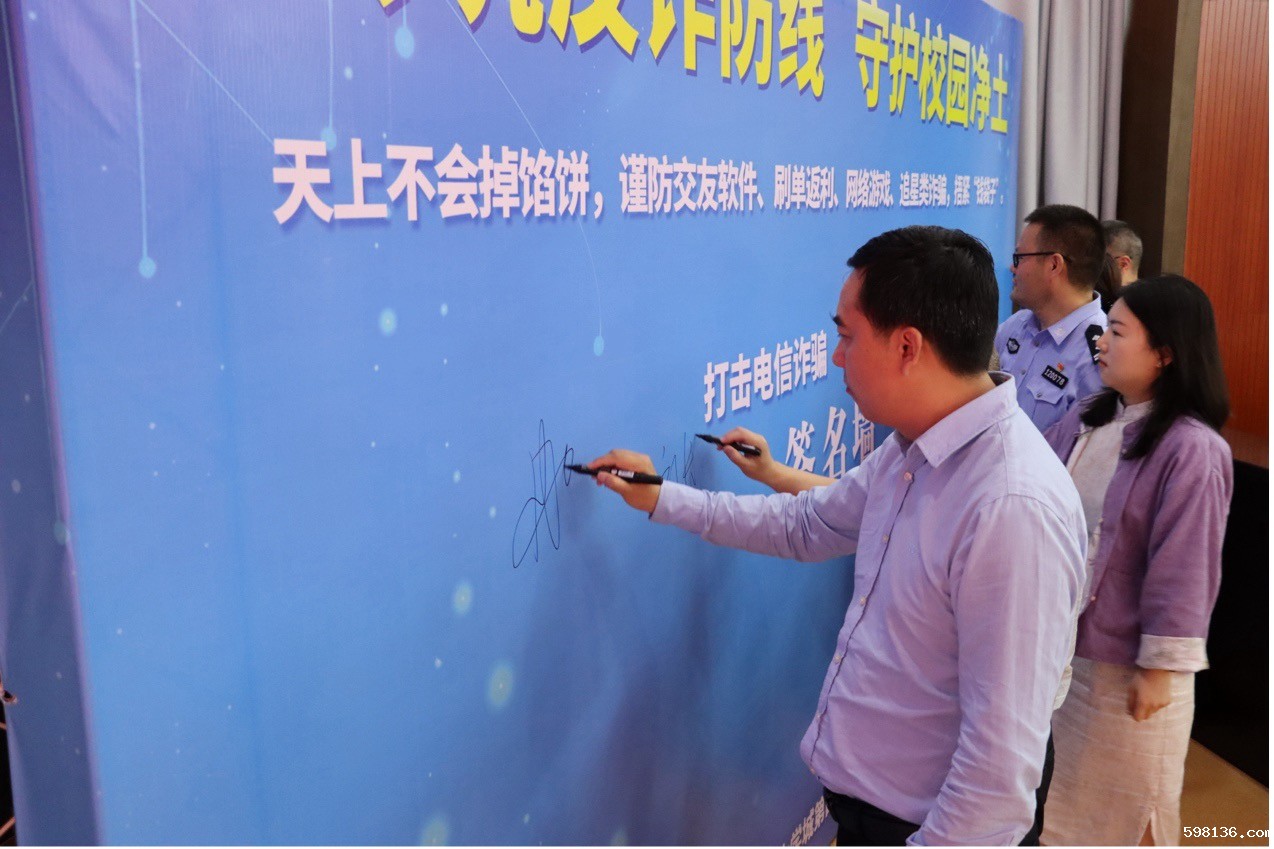 活动伊始,领导率先垂范,在反诈骗签名墙上郑重签名,承诺将紧密联合家校社力量,以实际行动为反诈宣传助力。